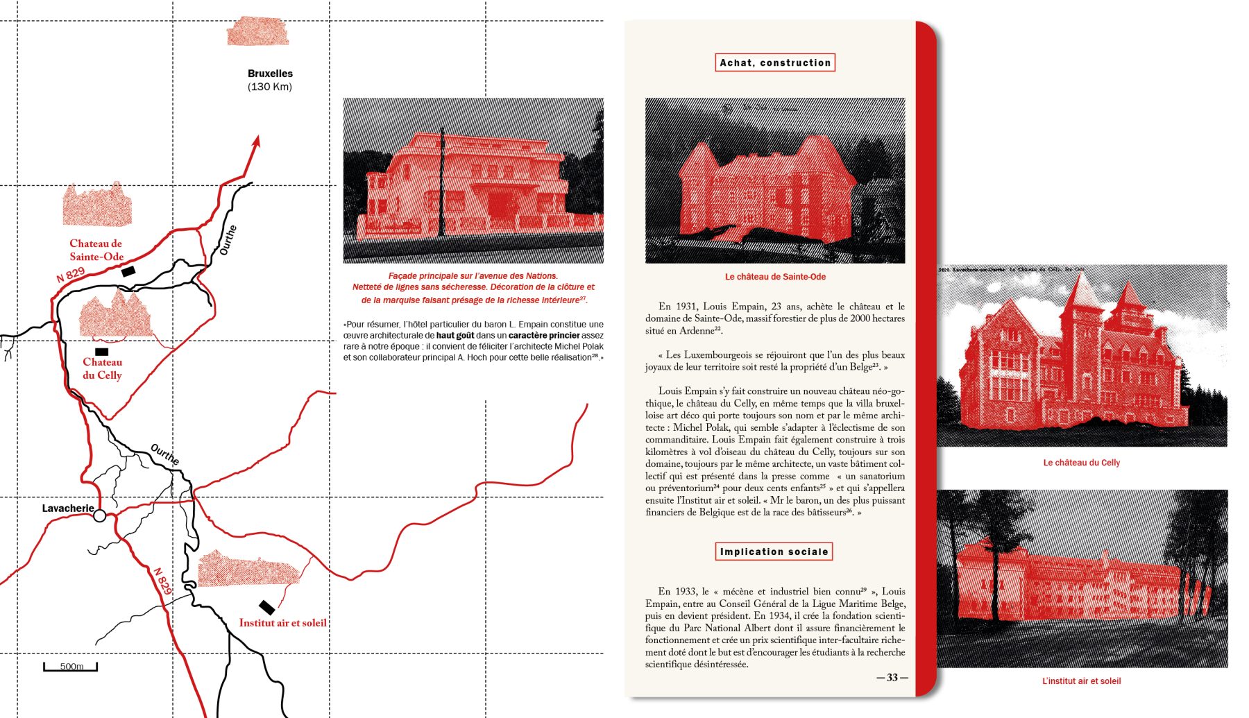La seconde enquête porte sur un bâtiment construit par l’architecte suisse Michel Polak en Ardenne, à la demande d’un riche philanthrope, Louis Empain. Elle a donné lieu à une exposition à Bruxelles, à l’espace de création été 78 en 2021: vous êtes vous lavé les mains?