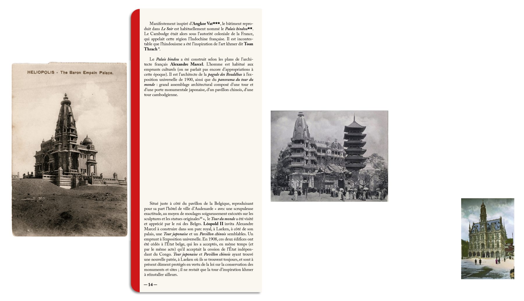 L’articulation de ces deux projets a nécessité quelques enquêtes complémentaires mettant à jour l’héritage reçu par Empain et sa manière de s’en libérer, ou de le tenter. Les bâtiments ont alors été envisagés, en tant que patrimoine, sous le prisme de leur destin : le livre montre l’écart entre les intentions tant du commanditaire que du créateur et la capacité du bâti à y résister, voire à s’en émanciper.