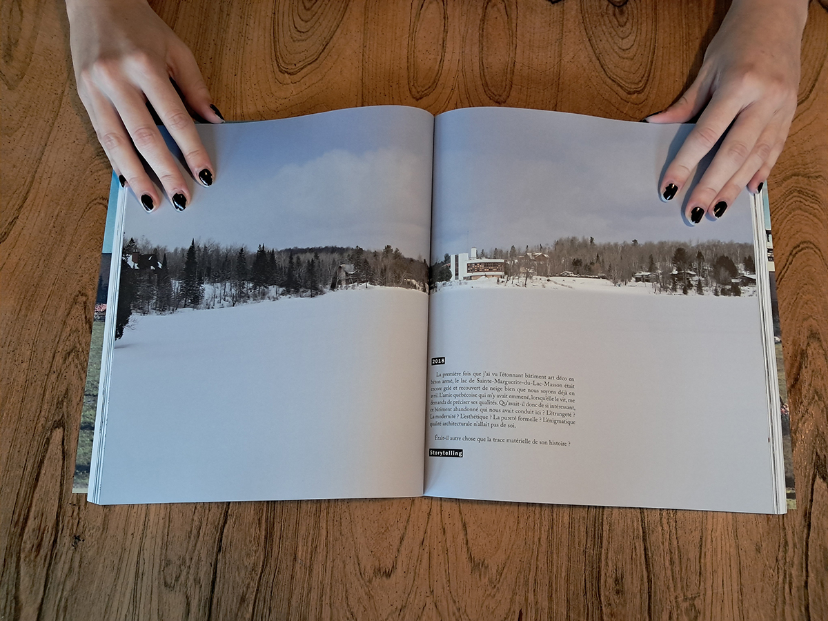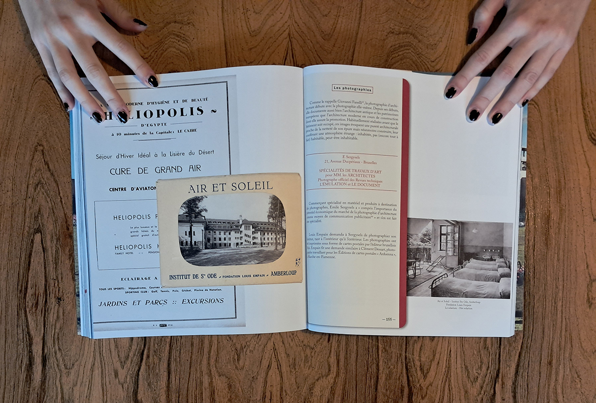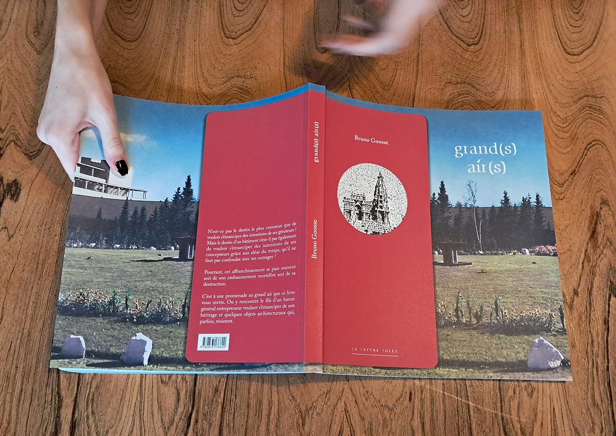 Publié aux Éditions La Lettre Volée, le livre grand(s) air(s) revient sur deux enquêtes ayant chacune conduit à une exposition. La première concerne un bâtiment construit par l’architecte Antoine Courtens dans les Laurentides, au Canada, à la demande d’un riche homme d’affaire, Louis Empain. Elle a donné lieu à une exposition au centre d’art et d’essai Occurrence à Montréal en 2020 : échoué n’est pas coulé.