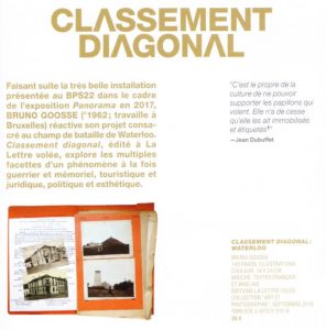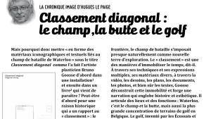 Hugues Le Paige a consacré sa chronique image dans l’excellente revue POLITIQUE au livre « Classement diagonal » « Mais pourquoi donc mettre « en forme des matériaux iconographiques et textuels liés au champ de bataille de Waterloo » sous le titre Classement diagonal, comme l’a fait l’artiste plasticien Bruno Goosse d’abord dans une installation[1.Présentée au BSP22, Musée d’Art de la…
